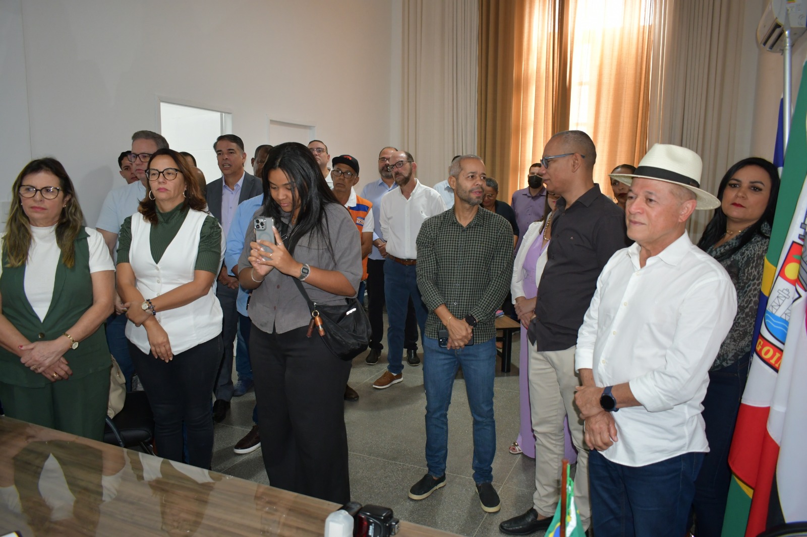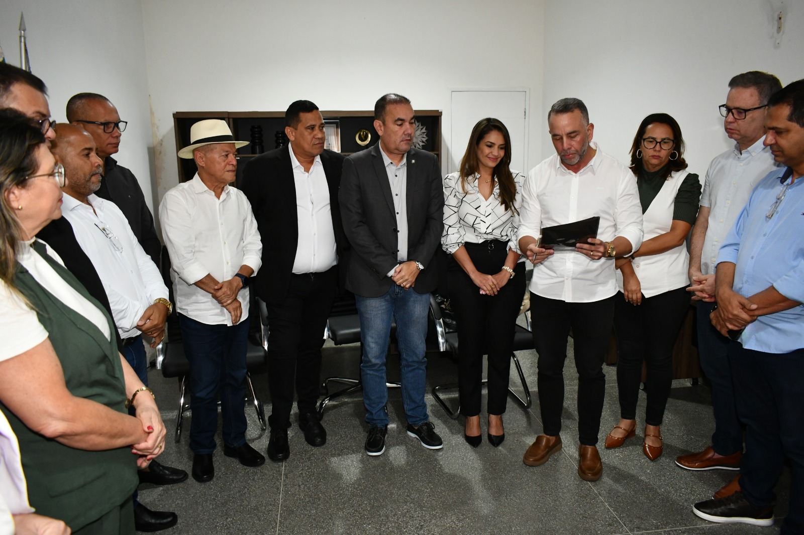Na manhã desta sexta-feira, 24, na sala do gabinete da Prefeitura de Alagoinhas, aconteceu a assinatura do Termo de Transmissão de Cargo do prefeito Gustavo Carmo para o vice, Luciano Sérgio, por motivo de viagem internacional para integrar a Delegação Brasileira de Prefeitos que participará da Asia Pacific Cities Summit (APCS) & Mayor’s Forum 2025, em Dubai. A cerimônia contou com todo o secretariado do Poder Executivo, além das participações do presidente da Câmara de Vereadores, Cleto da Banana, e do deputado federal Joseildo Ramos. Luciano assume a Prefeitura até 2 de novembro.