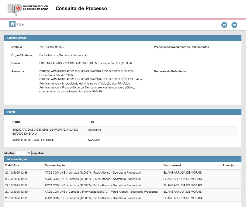 A iniciativa do Sindicato joga luz sobre algo que a sociedade de Paulo Afonso não pode ignorar. Afinal, se em menos de um ano de gestão já surgem tentativas de manipular licitações milionárias, o que esperar do restante do mandato?